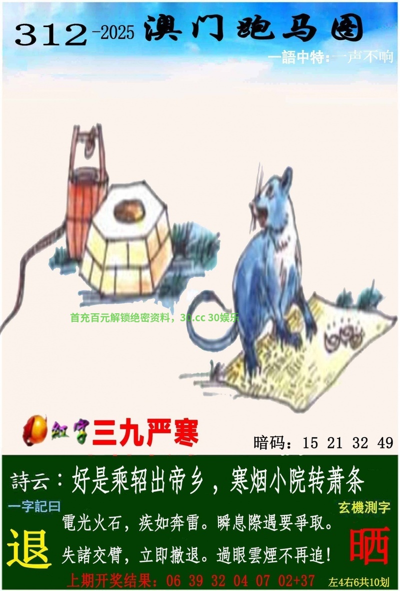 309期:⏲合单合双 ╠合双╣ ⏲开:鼠06中